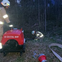 Die Gruppe KLF führte einen Außenangriff durch – angesaugt wurde mit der TS (Tragkraftspritze) bei einem nahegelegenen Bach.