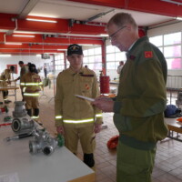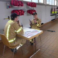 Abgefragt wurden bei dieser Wissensüberprüfung mehrere Kategorien, unter anderem Dienstgrade, Knoten, Gerätekunde, Funken, Planspiel, Erste-Hilfe sowie die richtige Handhabung im Umgang mit Feuerlöschern.