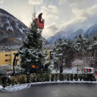 Wie schon in den vergangenen Jahren organisierte Alt-Kdt. Stefan Zeni einen Steiger der Fa. Fiegl. Damit konnten die Lichterketten recht flott auf dem Christbaum montiert werden.