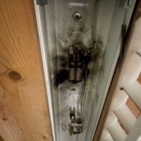 Der Strom wurde von uns im betroffenen Bereich abgeschaltet und der Neonbalken zur Sicherheit von der Decke entfernt. Anschließend wurde die Temperatur der Decke mit Hilfe der Wärmebildkamera noch kontrolliert und die Räumlichkeiten mit dem Druckbelüfter die Luft gereinigt.
