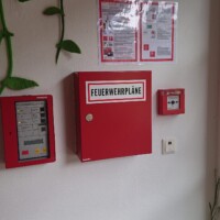 Bei der Erkundung vor Ort stellten wir fest, dass ein Brandmelder im 1. OG des Wohnheimes ausgelöst hatte, wobei wir jedoch keinen Auslösegrund feststellen konnten. Nach dem Rückstellen der Brandmeldeanlage löste der entsprechende Melder sofort wieder aus – womit klar war, dass ein technischer Defekt vorlag.