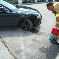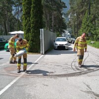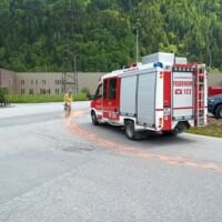 Ein kleiner Ölfleck unter dem verursachendem Fahrzeug sowie eine ausgedehnte Ölspur entlang der Olympstraße bis zum Holzhof Tinzl wurde durch unsere Einsatzkräfte mittels Bioversal und Bindemittel gebunden.