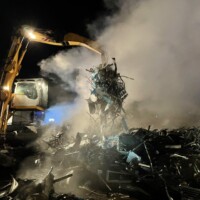 Da sich der Brandherd im Inneren des Haufens befand wurde anschließend mit dem betriebseigenen Bagger der Schrotthaufen zerpflückt und durch die Feuerwehren abgelöscht. Bei genauerer Kontrolle konnte der vermutliche Übeltäter – ein Akku-Pack (Batterie) ausfindig gemacht werden.