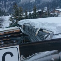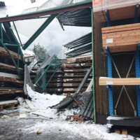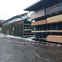 Schon bei der Meldung war klar, dass es weder verletzte noch verschüttete Personen gab. Bei Ankunft am Firmenareal sperrten wir den Bereich um die betreffende Halle großräumig ab und begannen mit der Ausleuchtung der Einsatzstelle. Bei der weiteren Erkundung unterstützte uns der Firmeninhaber mit einem Hubsteiger, damit wir uns ein Bild von oben machen konnten. In einen vorhandenen Schneestock hatte es den ganzen Tag über eingeregnet – nachdem nicht klar war, ob das Dach dieser Last nicht standgehalten hat oder ob eine andere Ursache vorlag, war ein Betreten der restlichen Dachflächen nicht möglich.