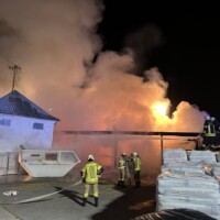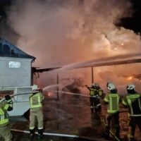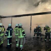 Um 21:41 Uhr des 16. Februar wurden wir direkt von unserer Jahreshauptversammlung zu einem „Brand groß“ in unserem Einsatzgebiet gerufen. Beim Lagerhaus stand ein Strohlager unter einem Flugdach in Vollbrand, erschwert wurde der Einsatz durch eine direkt darüber verlaufende Stromleitung.