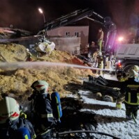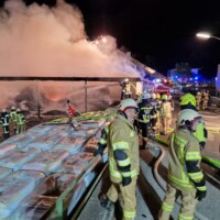 40 KameradInnen mit zwei Fahrzeugen unserer Wehr standen mit unseren Nachbarfeuerwehren Haiming, Roppen, Haimingerberg, Silz und der Atemschutzfüllstation der FF Imst teilweise bis in die frühen Morgenstunden im Einsatz. Ebenso das Rote Kreuz mit 2 RTW + Einsatzleiter Rettungsdienst, die Polizei mit drei Streifen + Brandermittler und das Einsatzteam der TINETZ mit drei Fahrzeugen sowie ein Hiab der Firma Fiegl. 6 Atemschutztrupps und insgesamt 150 Einsatzkräfte benötigten die ganze Nacht, um den Brand endgültig abzulöschen.