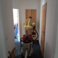 Nach einem kurzen Rundgang vor Ort beschafften wir uns Zugang in die Wohnung über den Wintergarten. Innerhalb der Wohnung stand bereits in mehreren Räumen das Wasser ca. 5cm hoch, welches von uns mittels Nasssauger abgepumpt wurde. Als Ursache für den Wasseraustritt konnte ein defekter Boiler im Bad ausfindig gemacht werden.