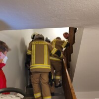 Während der Anfahrt bekamen wir von der Leitstelle mitgeteilt, dass sich der Rettungsdienst über einen gemeinsamen Balkon der Nachbarwohnung im 2. Obergeschoss bereits einen Zutritt in die betroffene Wohnung schaffen konnte.
