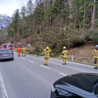 Ein Baum wurde durch eine heftige Sturmböe auf die B-186 Ötztalstraße geworfen. Unsere Aufgaben bestand darin den Verkehr zu regeln und den Baum aufzuarbeiten.