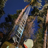 Bei der Erkundung vor Ort stellten wir fest, dass sich eine Katze auf einem Baum in misslicher Lage befand. Sofort wurde der Einsatzbereich ausgeleuchtet und eine Schiebeleiter aufgestellt um die Katze aus ihrer unglücklichen Lage zu befreien.