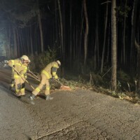 Die Einsatzstelle, sowie das Fahrzeug wurden gleich nach Eintreffen der Feuerwehr abgesichert und ein Brandschutz aufgebaut. Kurz nach unserem Eintreffen war bereits der Abschleppdienst vor Ort. Gemeinsam entschied man sich erst das Fahrzeug aus dem Graben zu bergen und anschließend den betroffenen Baum zu fällen.